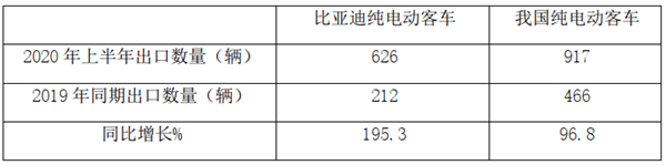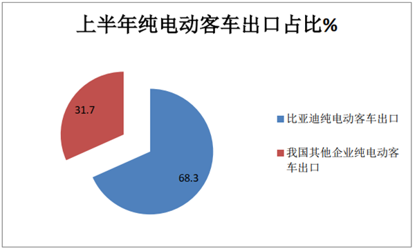 2、比亚迪上半年纯电动客车出口626辆,同比增长近2倍,占据整体纯电动客车出口68%,可谓独占鳌头