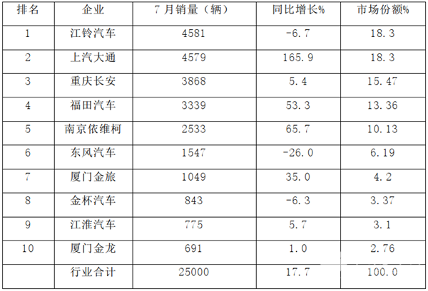 (二)2020年1-7月轻型客车TOP10榜单