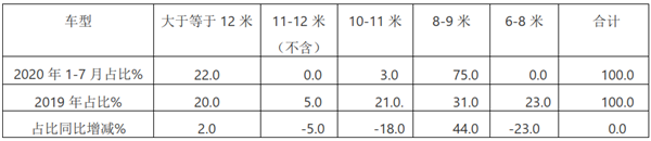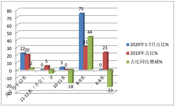 特点一、2020年1-7月燃料电池客车以中型客车为市场主打车型