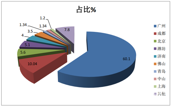燃料电池客车主销区域包括广东、上海、河南、北京、河北、山东等地,由示范城市或龙头企业支撑,发展意愿较为强烈,多地政府领导高度重视,密集出台多项支持政策,逐步覆盖燃料电池汽车推广应用各环节。2020年前7月,广东、四川、北京、山东、上海等区域的燃料电池客车推广力度较大,尤其是广东的广州,占据全国的额份额在6成以上(图4)。