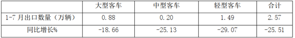 根据中汽协数据,2020年1-7月各月客车出口及同比: