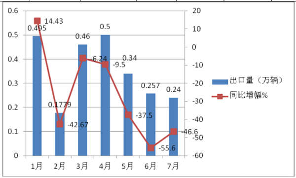 根据中汽协数据,2020年7月我国客车出口0.24万辆,环比下滑19.01%,同比下降46.42%;2020年1-7月我国客车累计出口2.57万辆,同比下降25.1%,现将2020年7月及1-7月我国客车出口市场特点做简要分析,供行业参考。