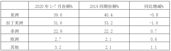 2020年7月及1-7月我国客车出口市场特点简析