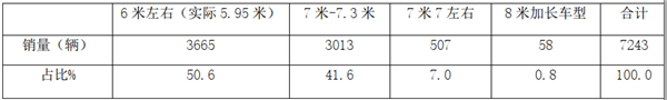 特征二、6米销量占比超半壁江山,成为最受市场青睐的考斯特车型