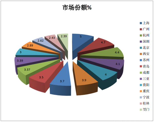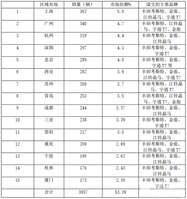 1、上海、广州、杭州占据前3名,说明考斯特客车流向与区域经济实力有很大关系。上广杭不但旅游经济发达,企事业单位也多,政府接待用车、企事业单位团体用车等几率最大,因此上广杭当仁不让占据前三。