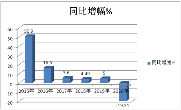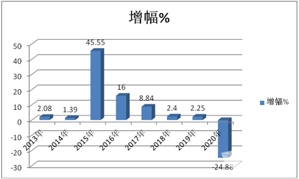 2013-2020年近8年前三季度高档客车市场增幅统计%
