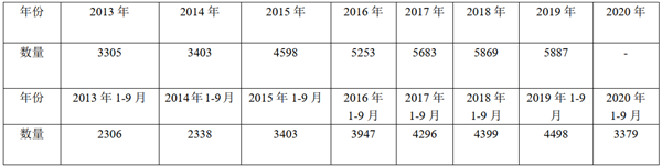 1、2013年-2020年及其三季度,价格在90万以上的豪华客车销售情况统计:表。单位:辆