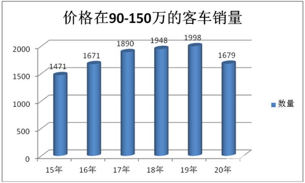 通过上图表3,可以看出:通过价格来细分高档客车市场,把豪华客车的价格分成三个区间90—150万,150—200万,200万以上,这样分析起来就比较方便和清楚一些。