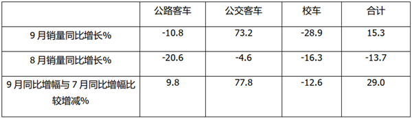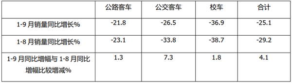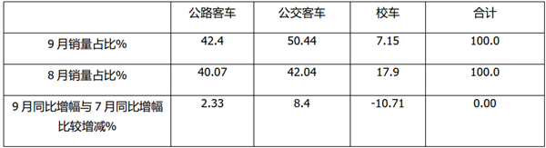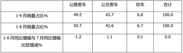 (三)与1-8月占比相比,1-9月公交占比增加最多,公路客车占比减少最多