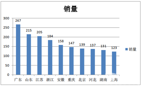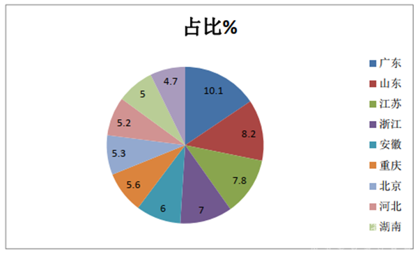 三、从9月大中型座位客车市场分布看,广东拔得头筹,山东位居第二、江苏位居第三;TOP10累计占比64.9%