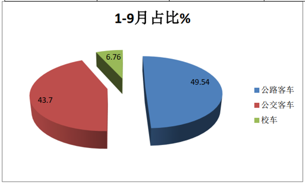 1、 新能源公路客车占据公路客车权重6.33%,同比下降1个百分点