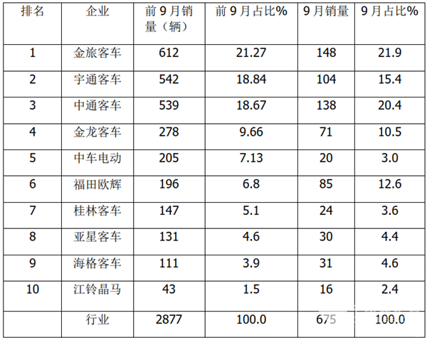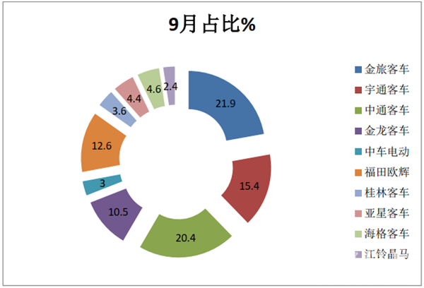 - 9月客车终端市场:中客电动化率最高 宇通\江铃分获大中客\轻客冠军