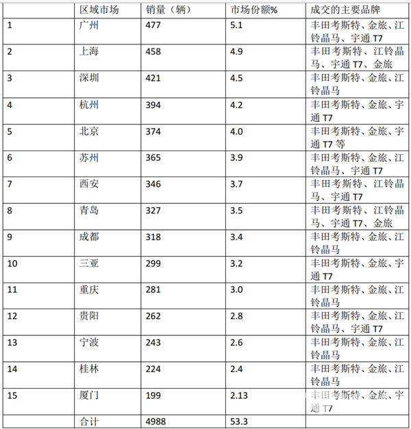 从上表可见,考斯特客车这一具体区域流向及成交的主要品牌分析,给车企后期精准制定考斯特客车的区域市场推广策略提供了依据。