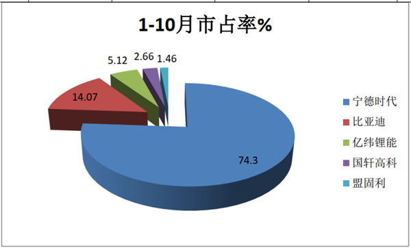 特点五、10月宁德时代一家独大,装机量为937.7Mwh,占比81.26%,TOP5累计占比99.59%