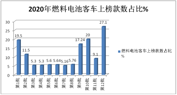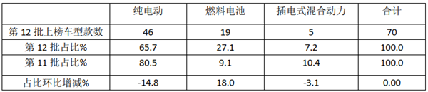 燃料电池车型占比增加最多,且创2020年以来12个推荐目录批次中上榜占比新高