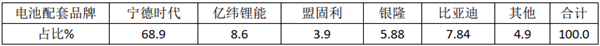 从配套电池企业看,宁德时代占比68.9%,接近7成,一家独大;其次是亿纬锂能,再次比亚迪,但相对老大宁德时代都相差很远。