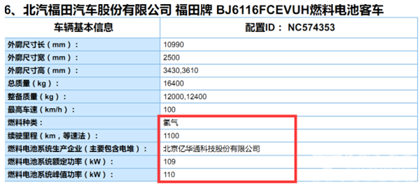 400公里以上的占据超6成,达到64.5%;300-399之间的占比超成,为31.0%;300公里以下的占比4.5%;本批次上榜车型中续航里程最高的是:纯电动客车车型是宇通公路客车ZK6119BEVQY18P2,续理里程达到670公里(电池能量密度为160.43Wh/Kg,也为最高,见下截图);燃料电池客车车型是福田欧辉燃料电池公路客车BJ6116FCEVUH,续航里程达到1100公里(见下截图)。