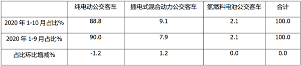 可见,按技术路线划分,2020年1-10月新能源公交客车销量结构: