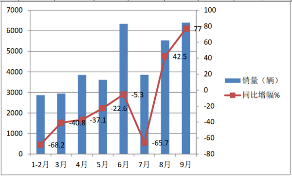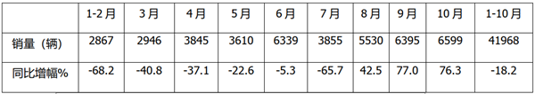 9月延续8月的增长态势,且增幅进一步上扬,达到77%,不仅增幅是前9月中最大的,销量也为前9月中最高月份,10月基本延续了9月大增的增长态势,只不过增幅比9月微弱收窄0.7个百分点。