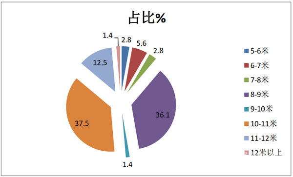 特点五、339批次新能源客车上榜车型中,10-11米段占比37.5%,居第一;其次是8-9米上榜26款,占比36.1%;再次是11-12米,上榜9款,占比12.5%