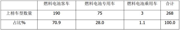 特点三、新能源汽车推荐目录中,燃料电池客车上榜数量占比超7成