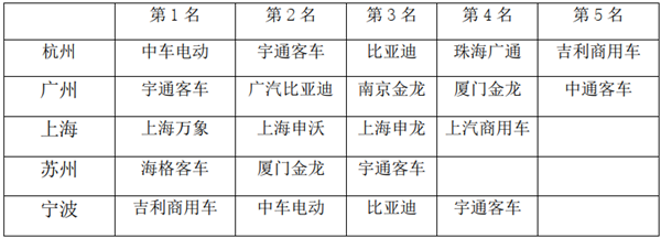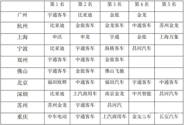 所谓知“己知彼,百战不殆”,上两表分别对2020年11月及1-11月新能源客车在重点区域市场的主要品牌进行了排名分析,给其他客车企业在后期进入上述重点区域市场如何避开竞争对手的锋芒、针对性地制定精准的区域市场策略提供了直接的参考依据。