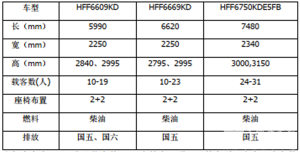 安凯客车在这一领域有HFF6609KD、HFF6669KD,长度为5.99米、6.6米,还有HFF6750KDE5FB,长度7米多;