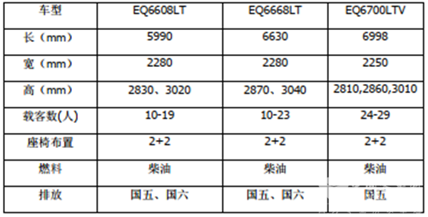 东风在这一领域有EQ6608LT、EQ6668LT和EQ6700LTV等车型,长度分别为5.99米(B照可开)、6.6米(这个要大客照)和7米。