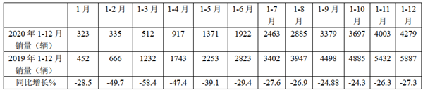2020年高档客车销量4279辆,是近6年来销量最低的年份;同比降幅27.3%,是近6年唯一同比下降的年份,而且降幅较大,可见2020年高档客车市场在疫情影响下处于低迷态势。为何会出现如此现象?