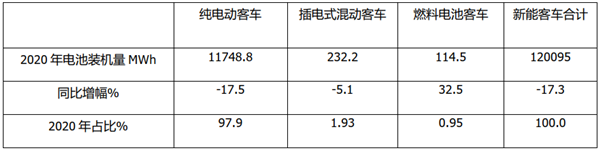 总之,2020年新能源客车动力电池装机量同比2019年下降17.3%,比2020年新能源客车同比降幅大约小3个百分点。相信2021年随着新能源客车市场的改善,动力电池装机量也会增加。具体如何,请业内拭目以待!