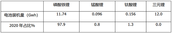 上图表可见,2020年,在新能源客车动力电池装机量中,磷酸铁锂电池占比均是一家独大,占据绝对主体地位(97.9%),主要是磷酸铁锂电池的良好的热稳定性和安全性能,更适合载人的客车所致。