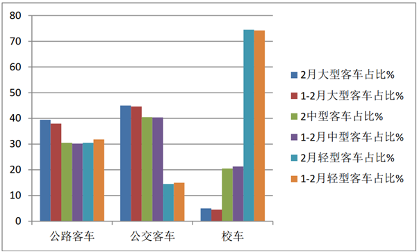 从上图表可以看出,在2021年2月及1-2月客车三大细分市场中: