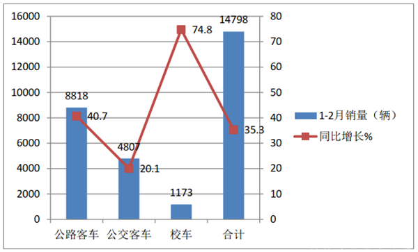 上图表可见,在2021年1-2月客车三大细分市场中,公路客车销量为8818辆,为最大,同比增幅40.7%,居于第二。