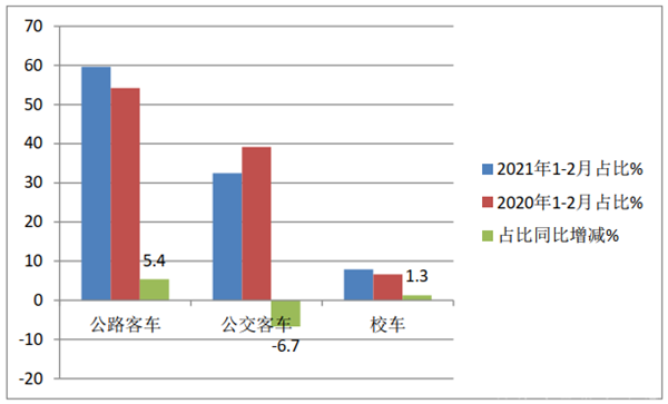 特点二、2021年前2月公路客车是客车三大细分市场中份额同比增加最大的细分市场