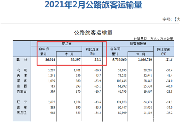 总体看,2021年前2月公路客车“大转小”趋势明显。主要原因是受疫情影响,2021年前2月公路客源同比减少19.2%(见下截图---交通部最新发布的2021年前2月公路旅客运输量)