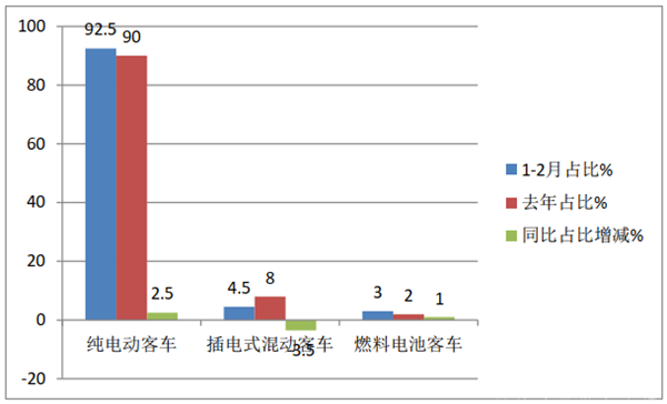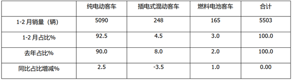表3,2021年1-2月按技术路线划分,新能源客车销量结构(数据来源:上牌信息):