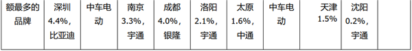 而在2021年前2月新能源客车TOP10城市中,广州第一占据5%,其次是重庆占比4.6%,再次是深圳占比4.4%,而且在这些主流城市的新能源客车上牌中,都有一个表现最好的车企。如广州是广汽比亚迪表现最好,重庆是中车电动表现最好,深圳是比亚迪表现最好,成都是银隆新能源表现最好,武汉是南京金龙表现最好,南京是宇通表现最好,郑州也是宇通表现最好,北京是福田欧辉表现最好,洛阳也是宇通表现最好。总体看,宇通的新能源客车在各地的综合表现最棒,不愧为新能源客车老大!