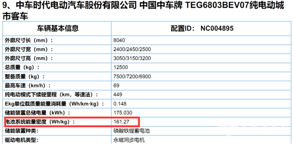 特点七:在本批次上榜车型中,宇通客车ZK6127BEVG39M纯电动城市客车续航里程最大,达到770公里; 国唐汽车的国唐牌纯电动低地板城市客车SG6126BEVGK21中车电动的中车牌TEG6803BEV07纯电动城市客车的能量密度均达161.27wh/kg,为最高