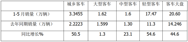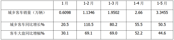 一、今年前5月 城乡客车市场销量超3万辆,同比增幅超5成,跑赢客车大盘,催生发展新动能