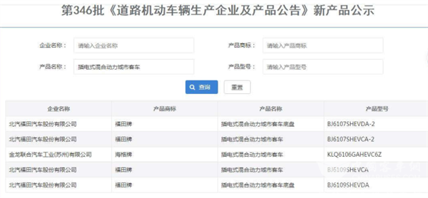 另外,本批次公告中插电式混合动力城市客车上榜5款(含2款底盘)车型(具体见下截图),主要是福田居多,占4款,海格占1款。