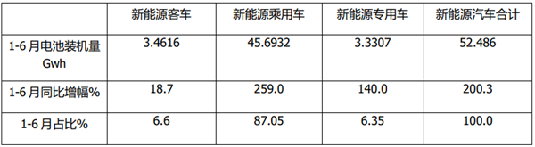2021年6月及上半年新能源客车动力电池装车量特点