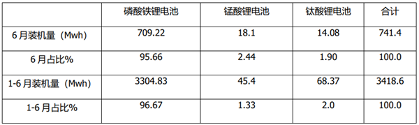无论是2021年6月还是1-6月,在新能源客车(不含燃料电池)装机量中,磷酸铁锂电池均占据绝对的主导地位。
