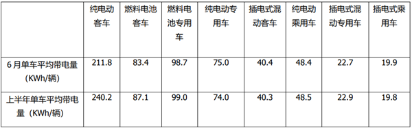 今年上半年新能源汽车各细分车型的单车带电量中,纯电动客车单车平均带电量为240.2KWh/辆,也是为新能源汽车中单车平均带电量最高的车型。