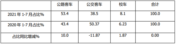 2021年7月及1-7月公路、公交、校车细分市场简析