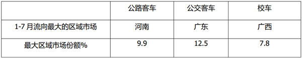 上表可见,从区域流向看,2021年1-7月5米以上客车市场三大细分市场中:
