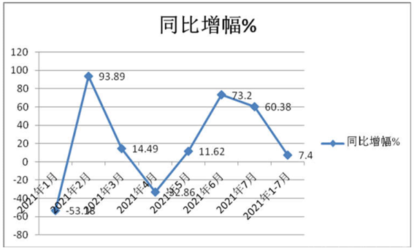 根据中汽协数据,2021年1-7月各月客车出口量及同比增长情况: