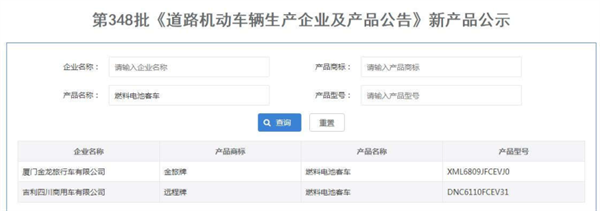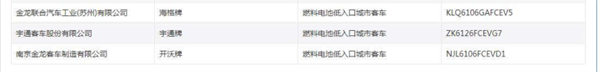 进一步分析发现,本批次上榜5款燃料电池客车产品分别是,厦门金龙旅行车和吉利四川商用车各有1款然电池客车车型上榜、海格客车、宇通客车、南京金龙客车各有1款燃料电池低入口城市客车车型上榜。
