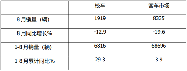 特点一、8月校车销量1919辆,创今年1-8月单月销量新高,但同比增幅创前8月各月新低