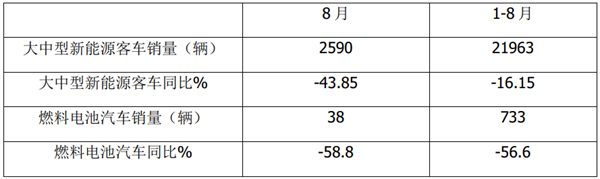 根据中汽协数据,2021年8月燃料电池汽车产销同比统计: