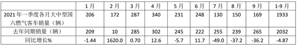 2021年前三季度国六天然气客车市场特点小结